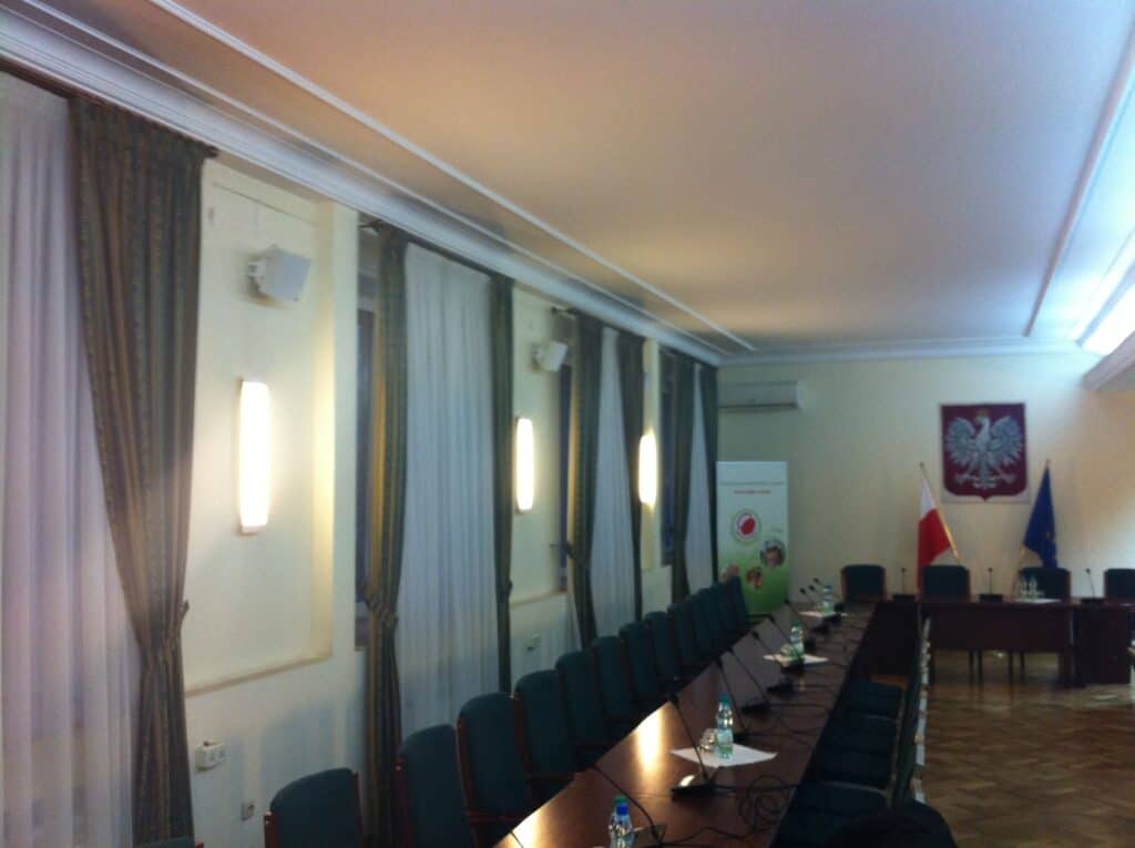 W Ministerstwie Rolnictwa w Warszawie mieliśmy okazję dostarczyć urządzenia do projektu sali konferencyjno-prasowej. Inwestycję zasililiśmy w: